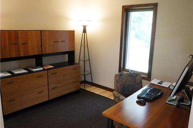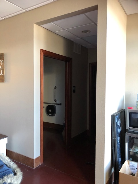 Corporate Office Re-Model – This client purchased an existing office building and re-worked the reception area to instead feature a conference room, waiting area, and coffee bar. (Construction by Durand Builders.)